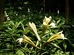 木漏れ日が差し込み、青白いウバユリの撮影は、